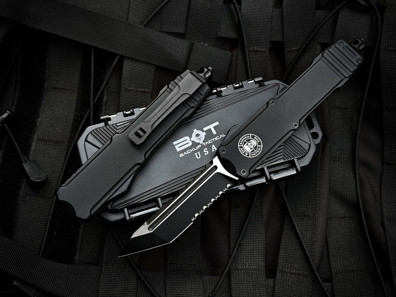 ADV Backup Tactical Stinger OTF Black Aluminum Body w/ S35VN Black Tanto Edge Partially Serrated Blade (3.6") 101-3BLK