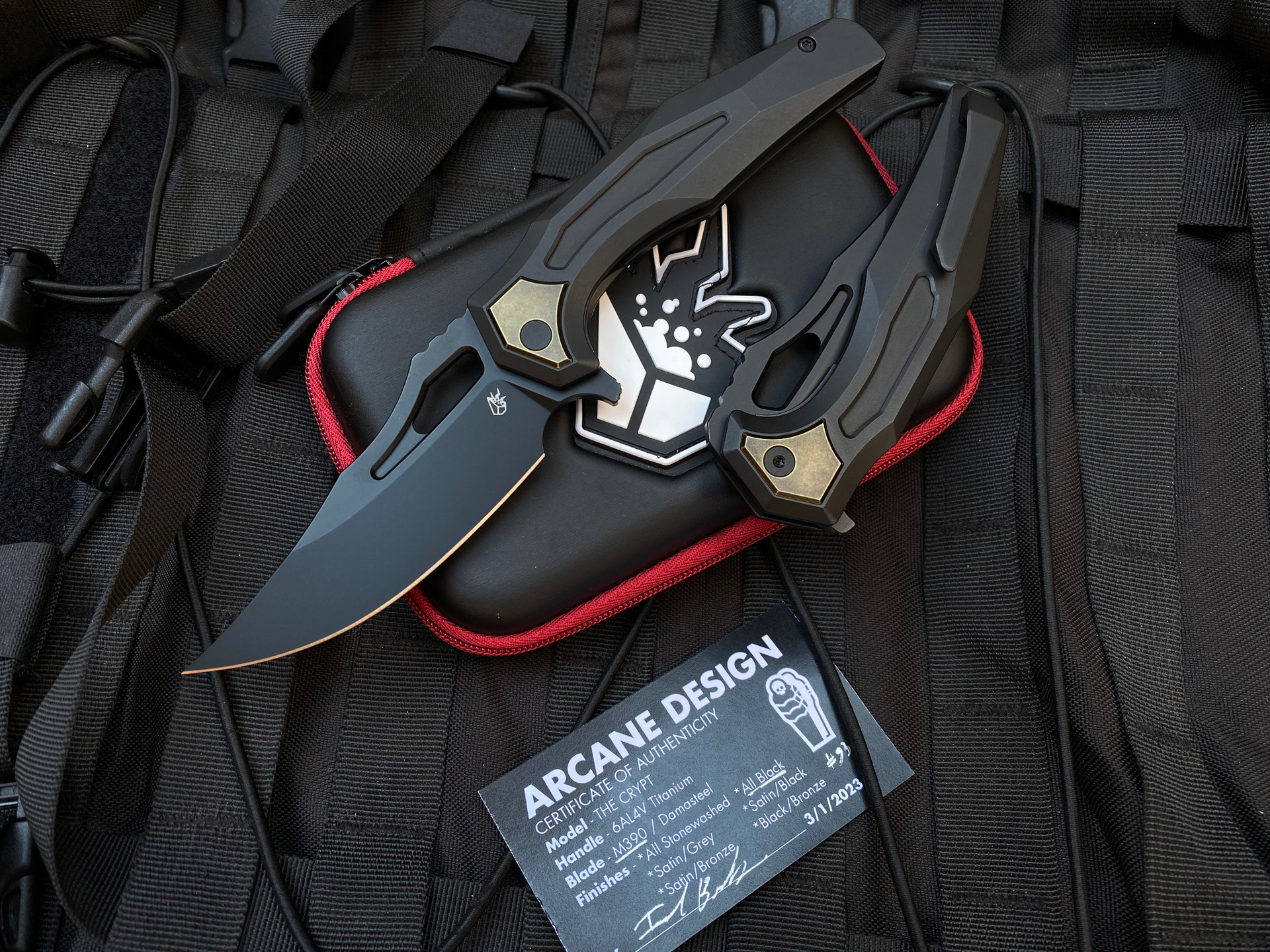 Arcane Design Crypt Folder Black PVD Titanium Body w/ M390 Black PVD Plain Edge Blade (3.75")