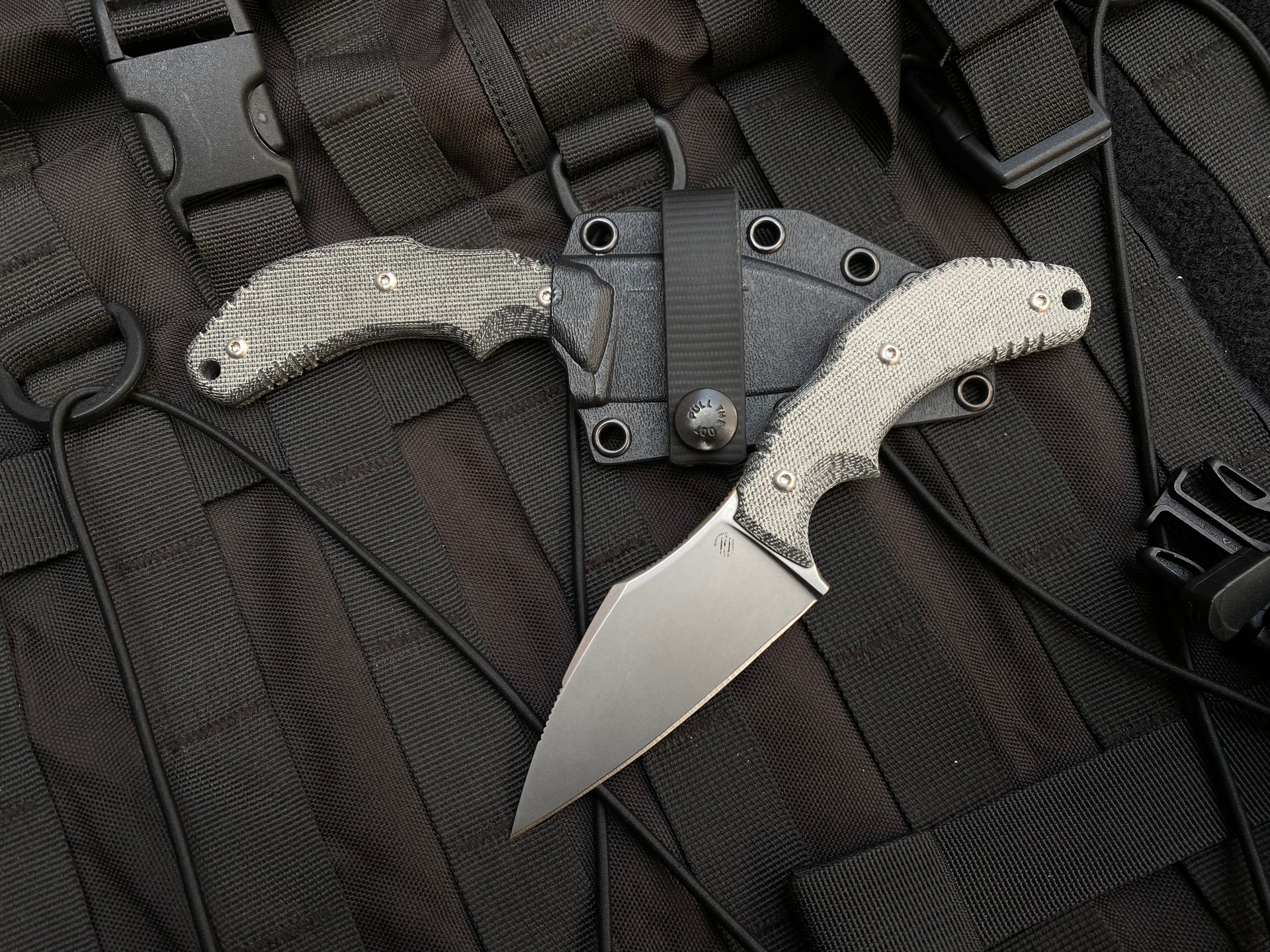 Bastinelli Foreigner Fixed Blade Black Micarta Scales w/ Stonewashed Plain Edge Blade (3.38") BC-34 SW