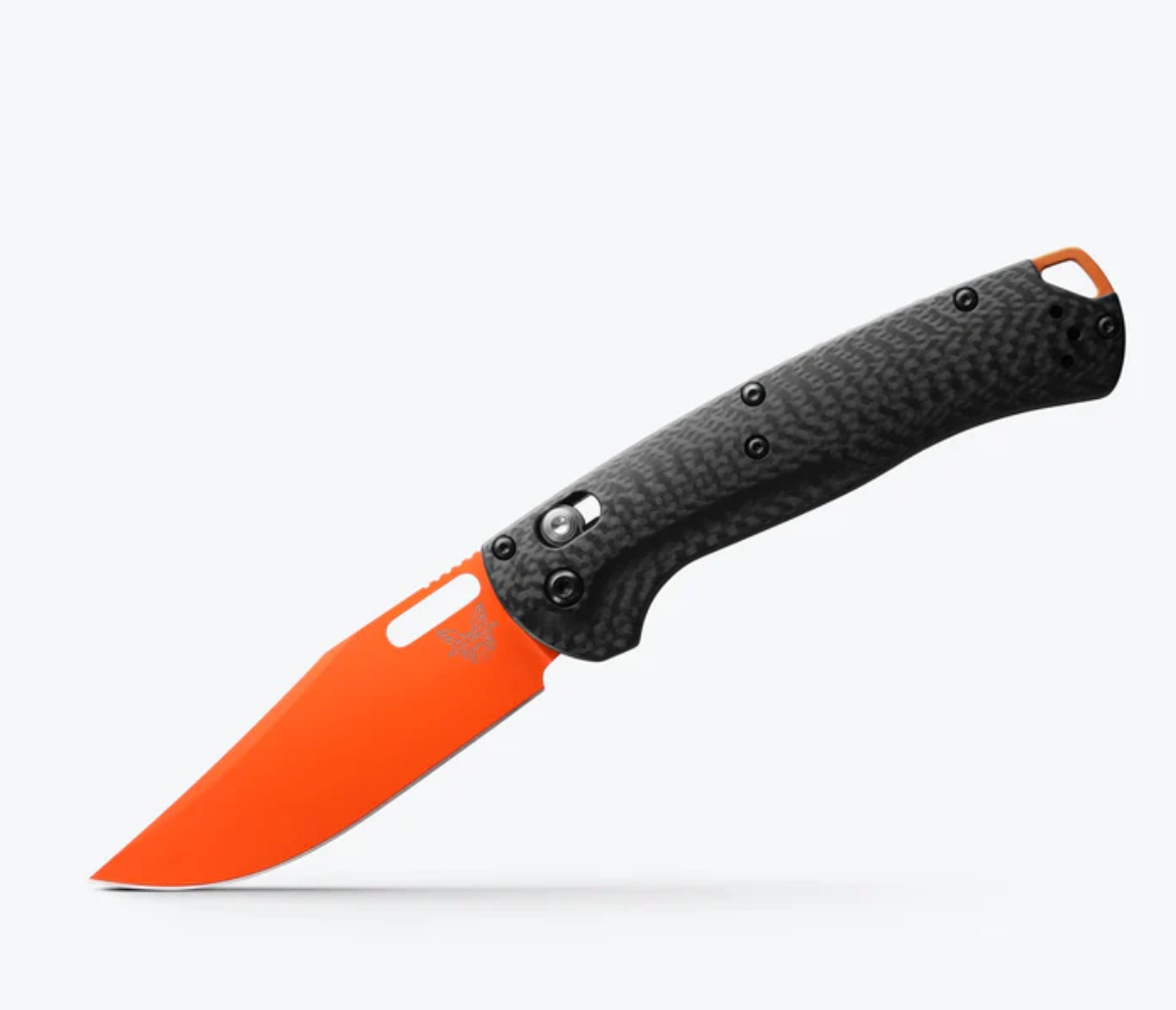 Take your ultralight game to the next level. Inspired by the insanely popular Bugout®, the all-new 15535OR-01 Taggedout® is our first knife to feature CPM-MagnaCut steel, fusing the high-hardness strength and toughness of a tool steel with the corrosion resistance of a super-stainless marine blade. Outfitted with premium carbon fiber handle scales for added rigidity and strength, along with an orange anodized lanyard backspacer, this new Taggedout® can handle the wildest of wilderness tasks.