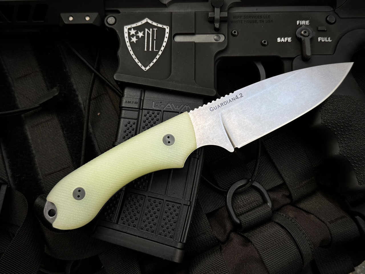 Bradford Knives Guardian4.2 Fixed Blade 3D Microtextured Ghost G-10 Scales w/ CPM-Magnacut Stonewashed Sabre Grind Blade (4.825") 4.2S-107-MC