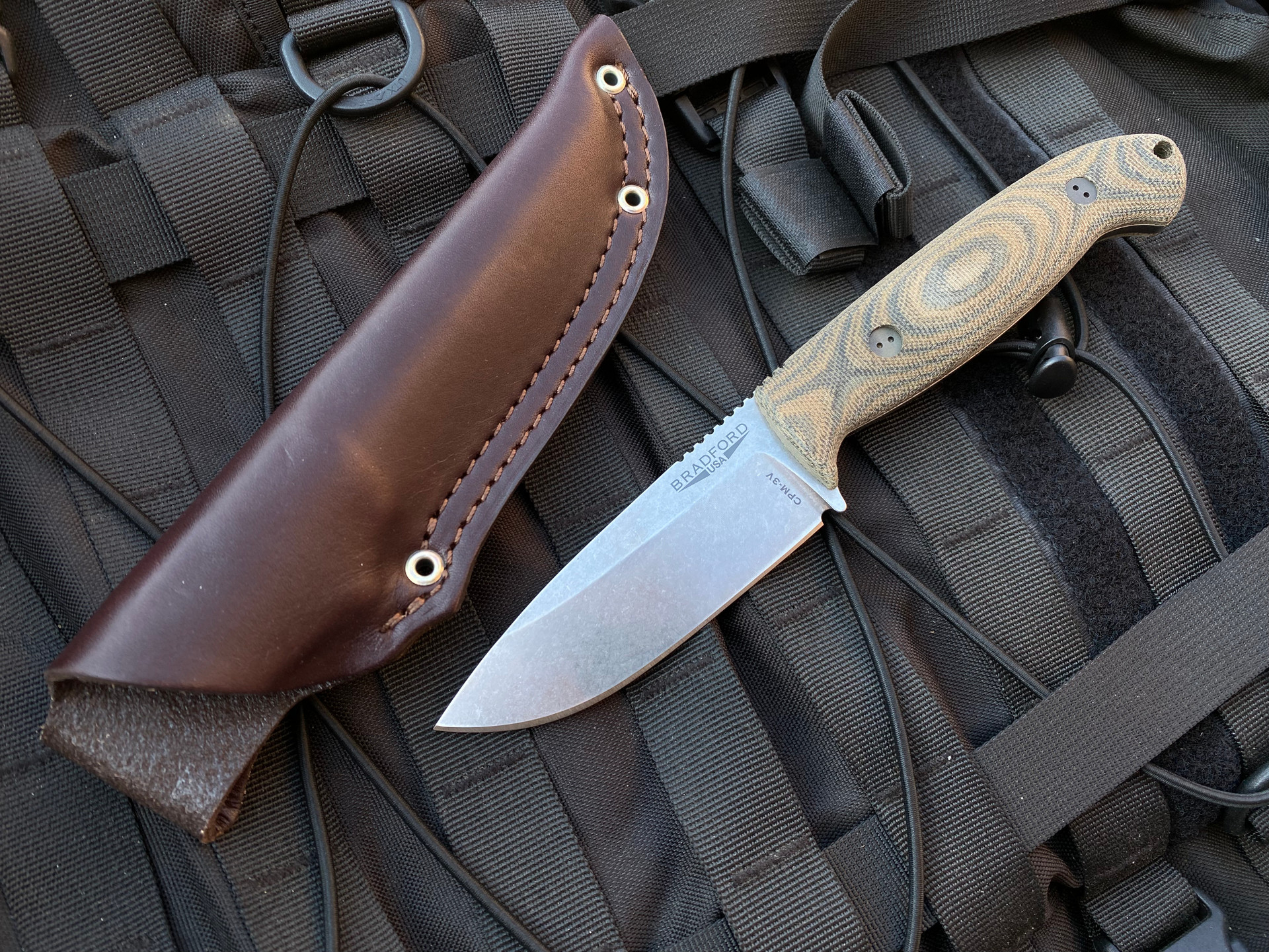 Bradford Knives Guardian4.5 Fixed Blade Camo Micarta Scales w/ Sabre Grind 3V Stonewashed Blade (4") 4.5S-109-3V