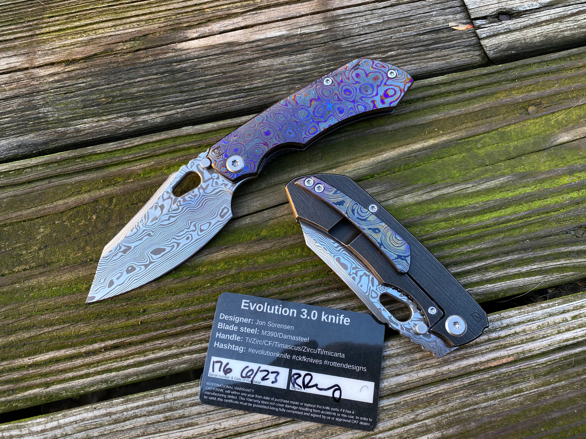 CKF Rotten Design Evo 3.0 Full Dress Folder Zircuti and Titanium Body w/ Zircuti Pocket Clip and Damasteel Plain Edge Blade (3.74")