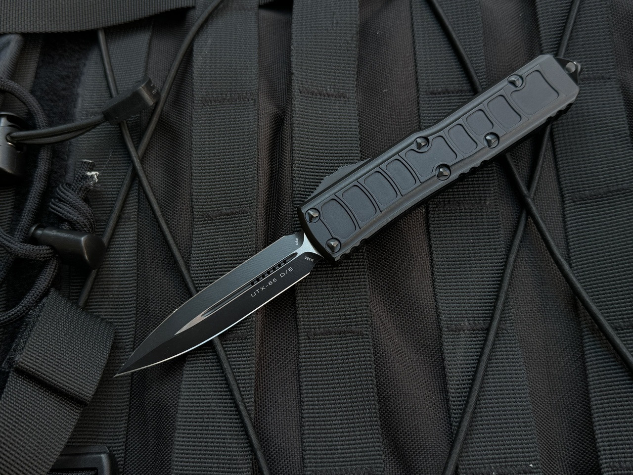 This is a Microtech UTX-85 II signature series in tactical black with black hardware. This was brought into us from a local client for consignment. The body of the knife shows some very minor wear and snail trails, with the majority of the wear being found on the pocket clip, which has some scratches and wear along the edges. The blade has very little wear near the tip. The action is unaffected. The original box and pamphlet are included.