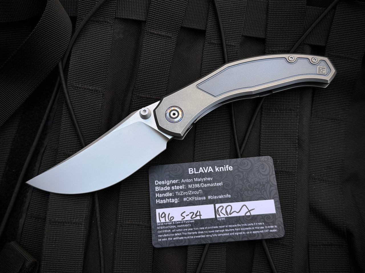 Custom Knife Factory Blava Folder Milled Titanium Body w/ M398 Stonewashed Plain Edge Blade (3.6")