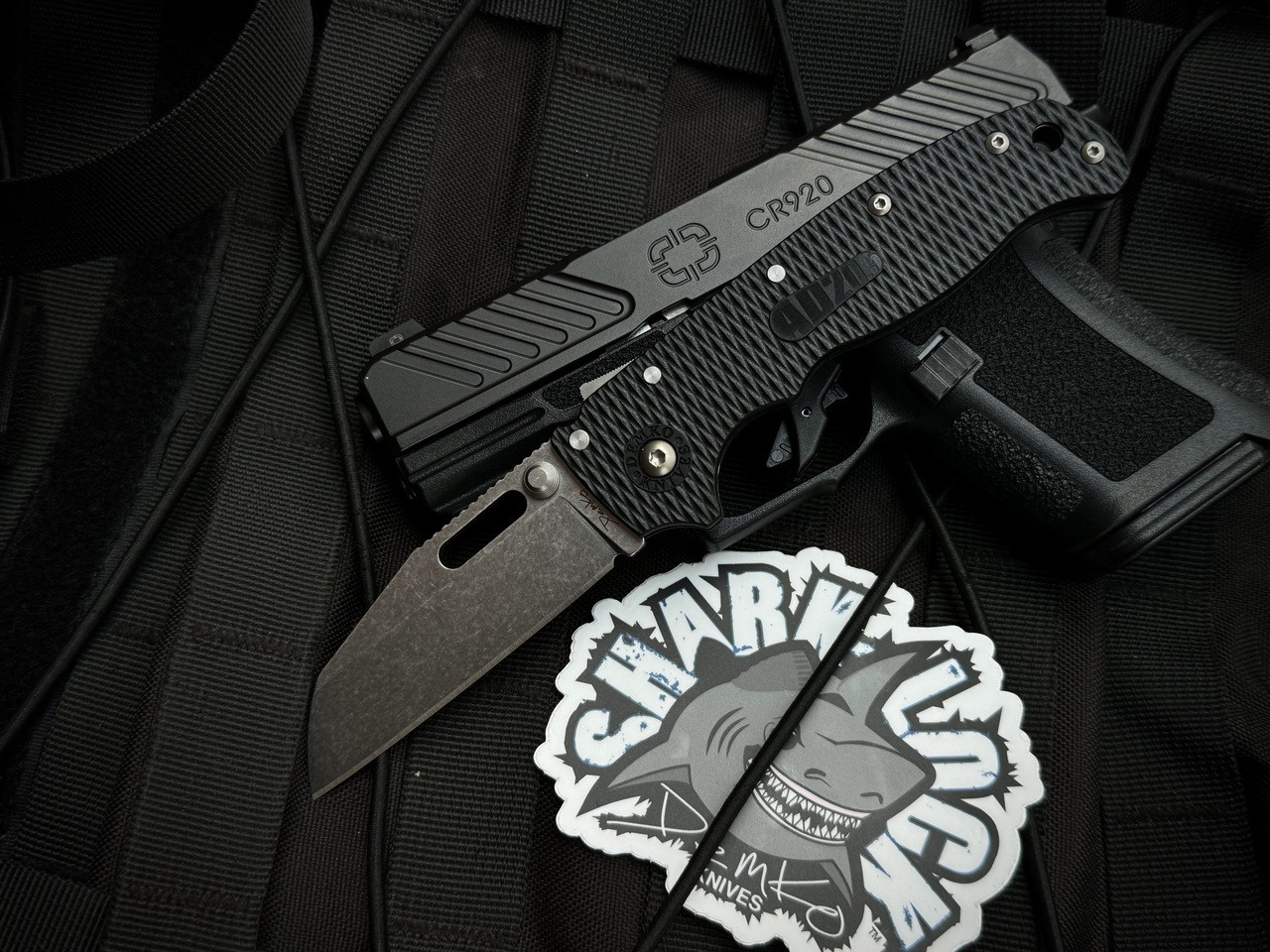 Demko AD20.5 Sharkfoot Folder Textured Black Grivory Body w/ AUS10A Stonewashed Plain Edge Blade (3.25") DEMAD205F22