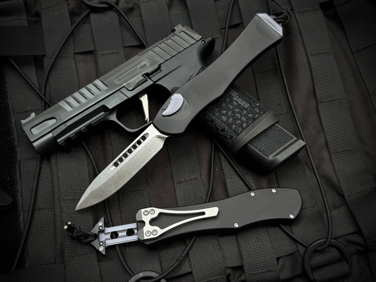Heretic Knives Hydra V4 S/E Black Aluminum Body w/ Magnacut Stonewashed Plain Edge Blade H407-2A