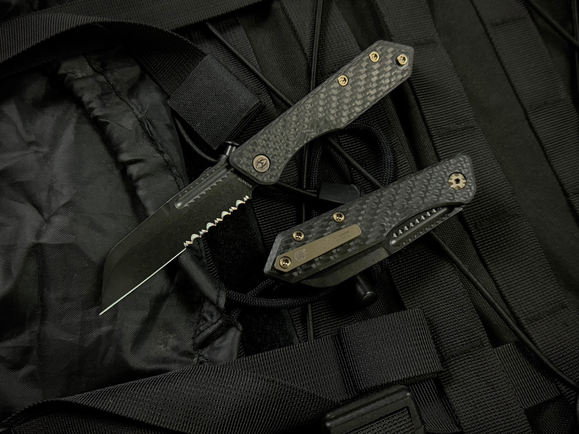 Heretic Knives Jinn Slipjoint Folder Carbon Fiber Body w/ Bronzed Hardware and DLC Partially Serrated Blade (3") H013-6B-CF