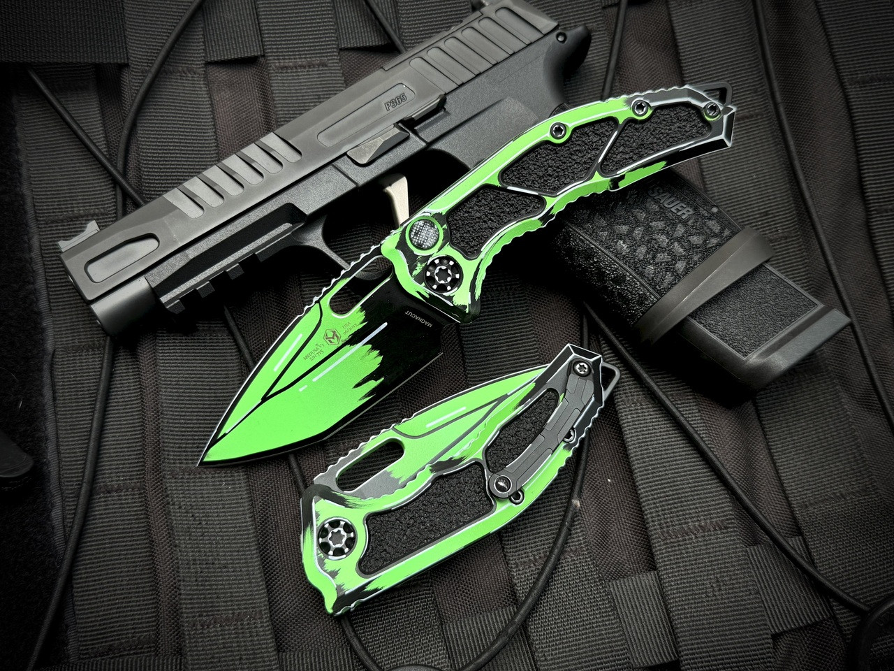Heretic Knives Medusa T/E Auto Folder Cel Shade Toxic Green Aluminum Body w/ Magnacut Cel Shade Toxic Green Plain Edge Blade (3") H011-CS-TX