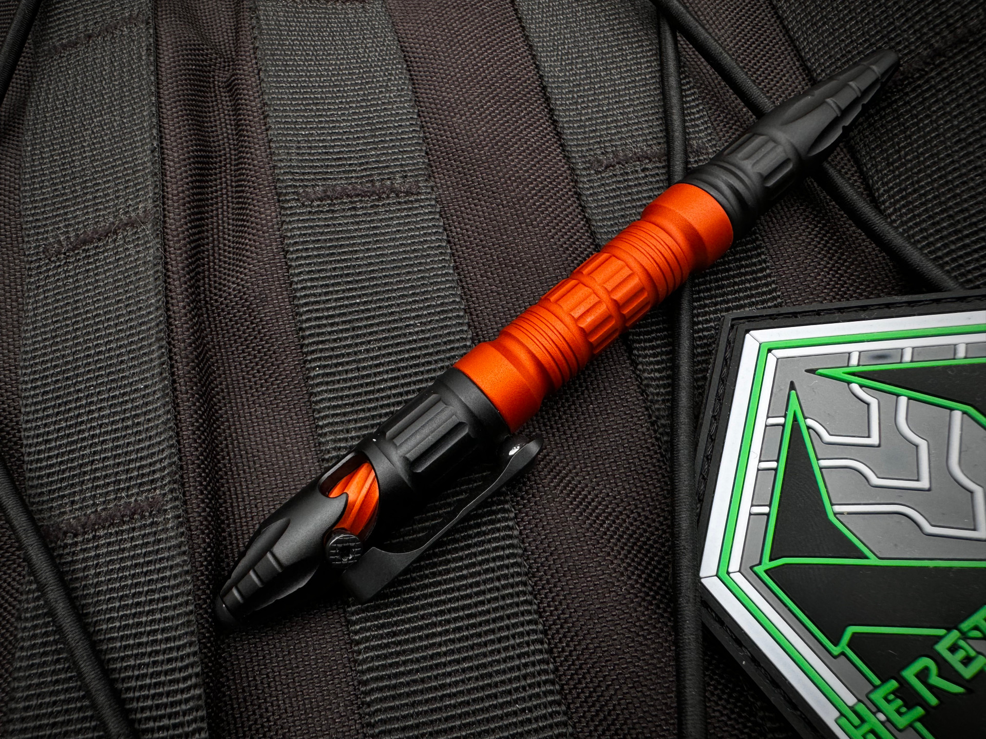Heretic Knives Thoth Bolt Action Ink Pen Black Anodized Tip and Tails w/ Orange Anodized Aluminum Barrel and Bolt H038-AL-OR