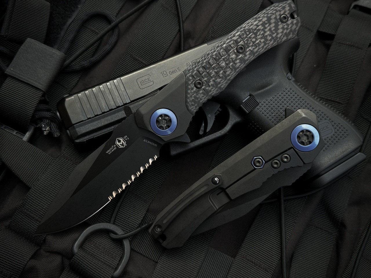 Heretic Knives Wraith Manual V3 S/E Flipper Integral DLC Titanium and Carbon Fiber Body w/ Blue Titanium Accents and Magncut DL