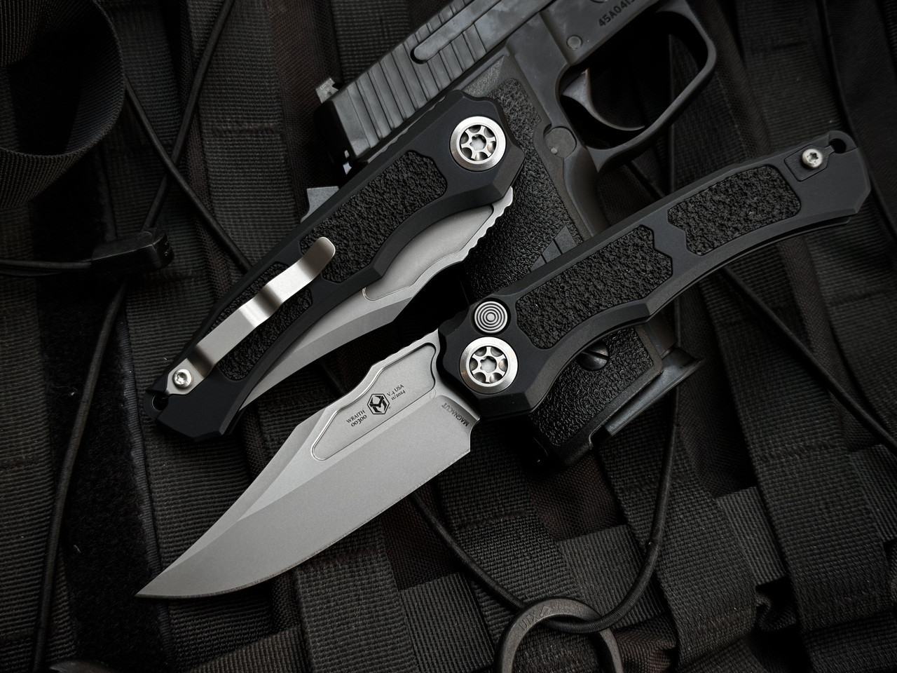 Heretic Knives Wraith V4 Bowie Auto Folder Black Aluminum Body w/ Magnacut Beadblast Plain Edge Blade (3.625") H002-3A