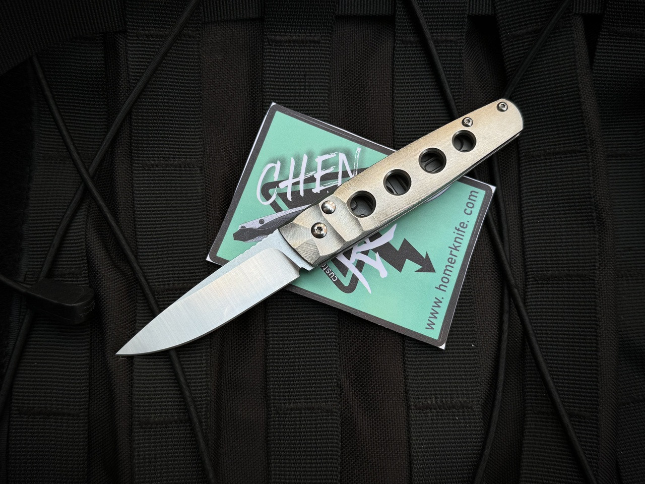 Homer Zhu Custom Chen Auto Folder Partially Sculpted Titanium Body w/ 154CM Satin Plain Edge Blade (2.75") #122
