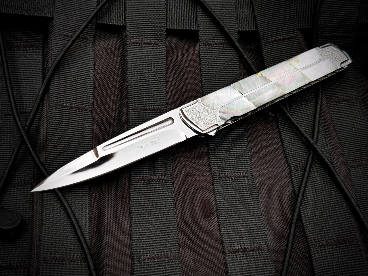 Koji Hara Custom Folder Black Lip Pearl Inlaid 316 Stainless Body w/ M390 Mirror Polished Plain Edge Blade (4")