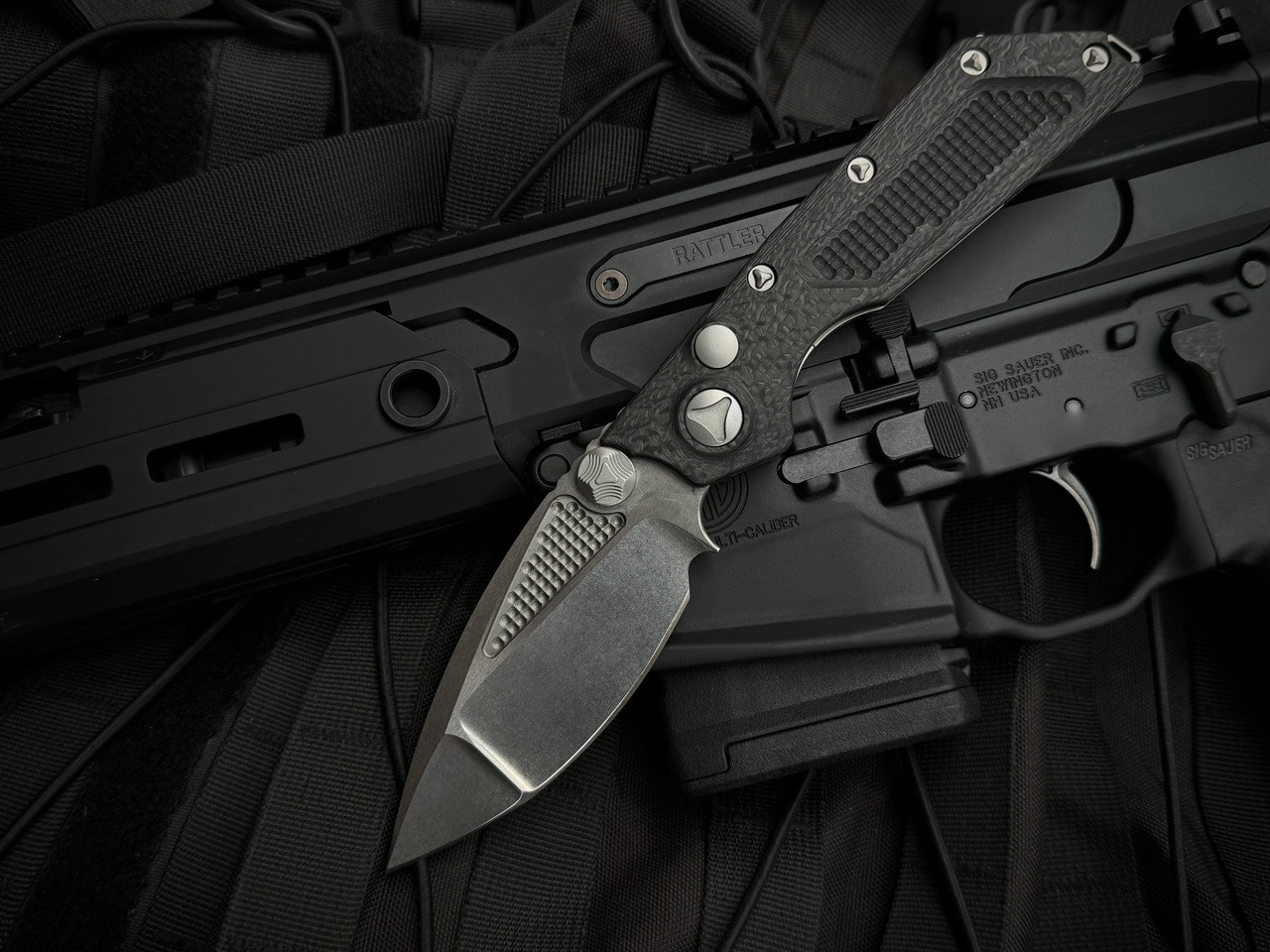 Marfione Custom DOC D/A Folder 30K Layered Carbon Fiber Body w/ Tri-Tone Stonewashed, Hand Ground Blade (3.75")