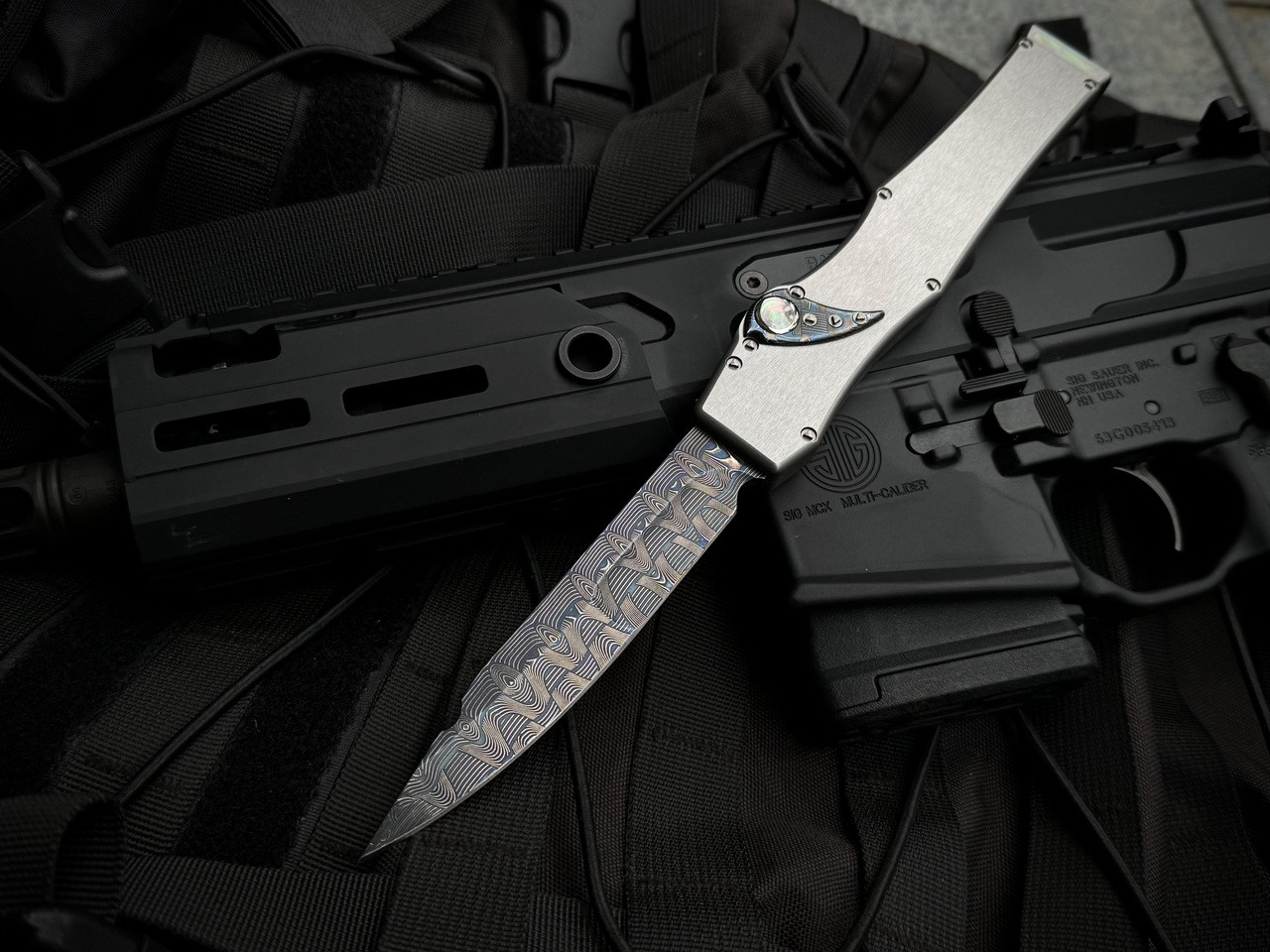 Marfione Custom Halo V Stainless Steel Body w/ Black Pearl Inlays and HG Devin Thomas High Carbon Blued Basket Weave Nightmare