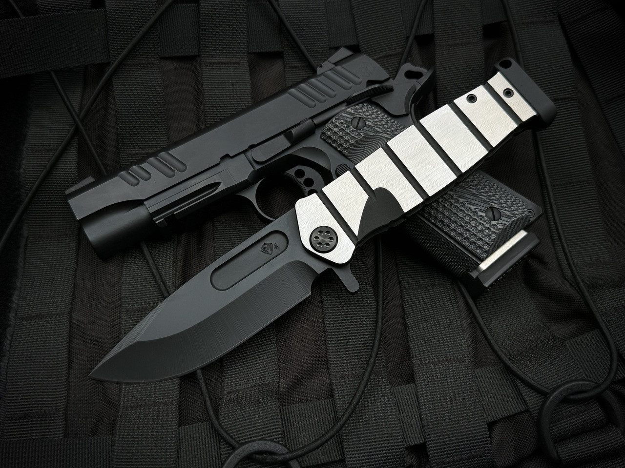 Medford Fighter Flipper PVD Faced Silver Flats Body w/ S45VN PVD Plain Edge Blade (4.25")