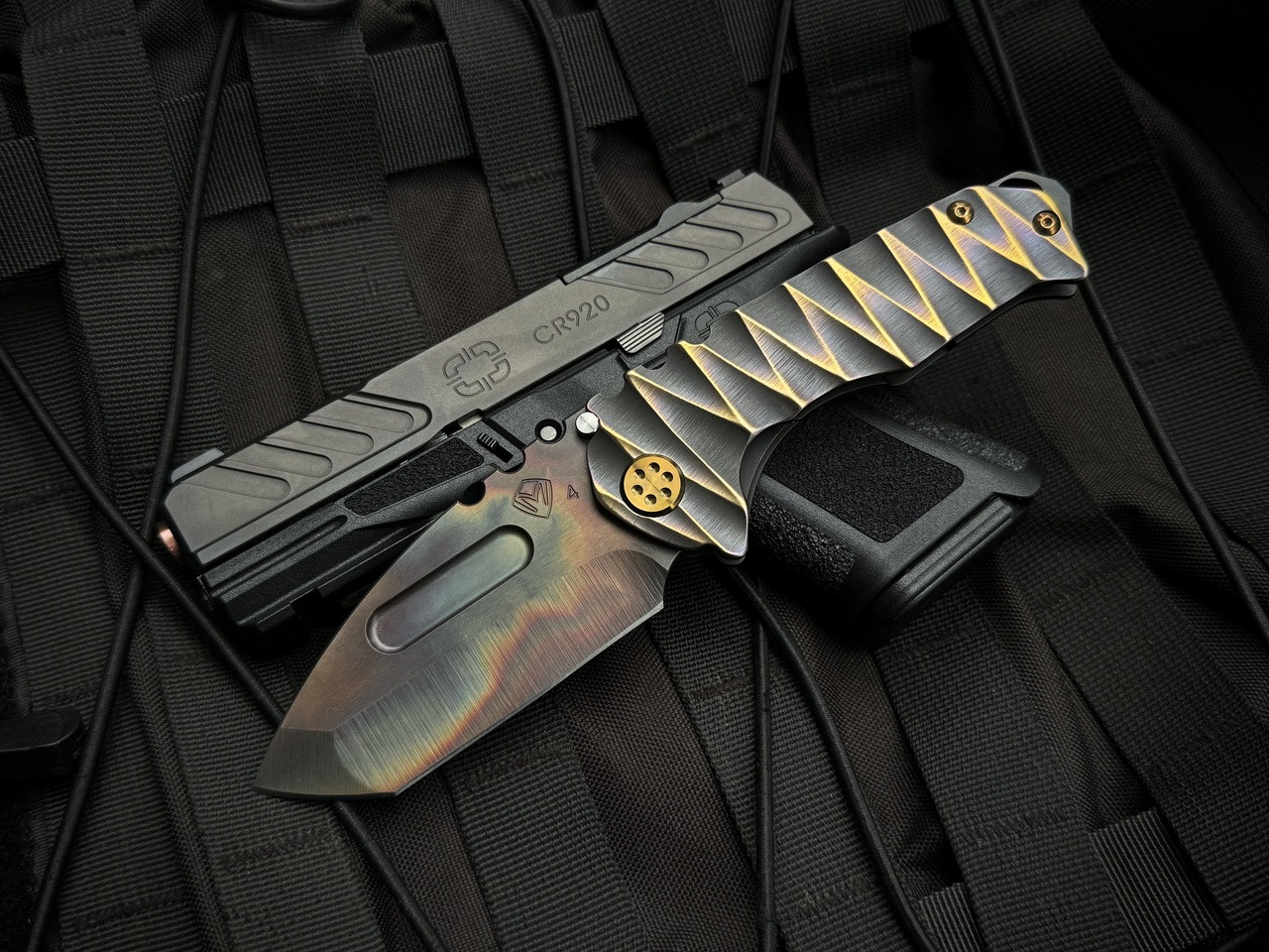 Medford Genesis T Folder Sculpted Black/Bronze-Violet "Lightning" Titanium Body w/ S45VN Vulcan Tanto Plain Edge Blade (3.3")