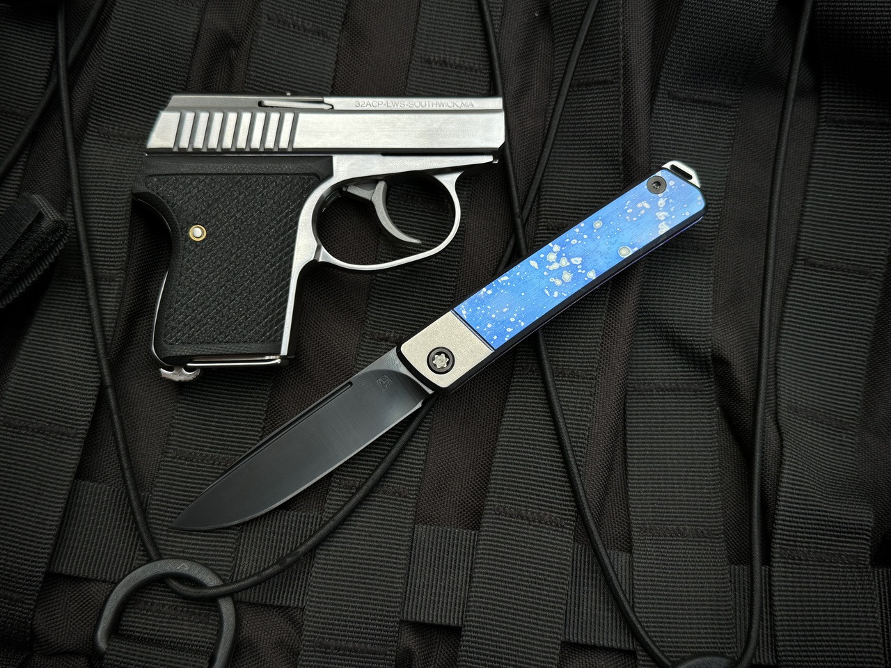 You asked for it and you got it.  Another first for us. A new breed of the ubiquitous gentleman’s folder.  A Ti slip joint with all the usefulness, elegance and build quality you’ve come to expect. The pocket knife for the discerning few who don’t want to carry a full-size edc blade or operate in non-permissive environments.  Now with more options to customize than before.  Redesigned traditional half-stop action, blade grind options and a Ti clip on the non-presentation side (removeable).