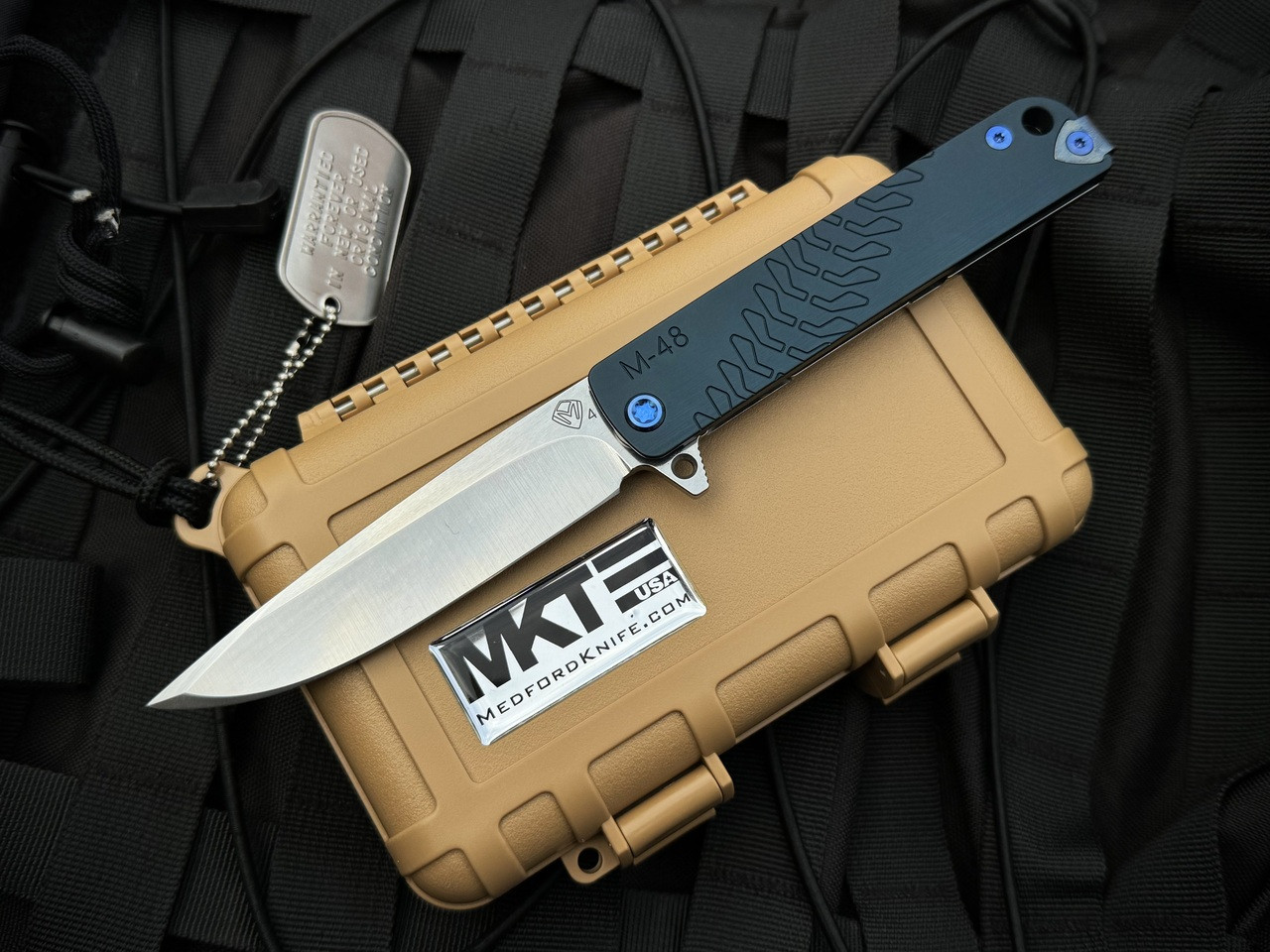 A homage to the M-48 Patton main battle tank and its four-man crew. 30 mph was never so exhilarating. A hybrid flipper on bearings with an Al handle, Ti spring and our newly introduced OTL and a reversible clip. At almost 9” fully deployed you have a very useful blade and with its hybrid construction, EDC friendly. With our new, innovative Magnus Edged™ tip, a hand-ground blade unlike any other. Lastly, fun “Easter Eggs” on the blade and clip.