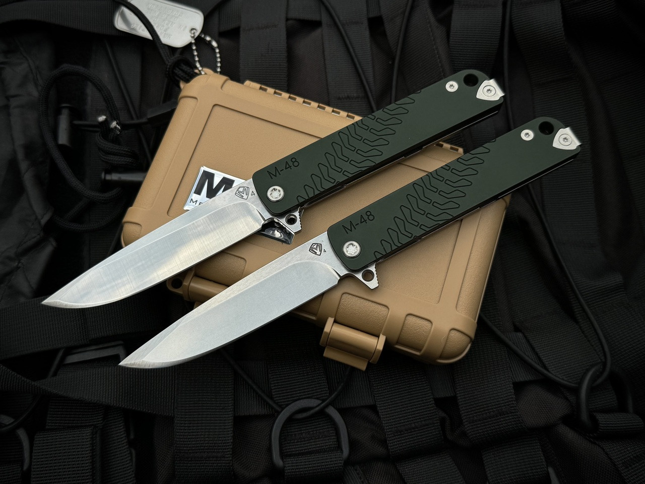 Medford Knives M-48 Flipper OD Green Aluminum/Tumbled Titanium Body w/ Standard Titanium Hardware and Tumbled Plain Edge Blade