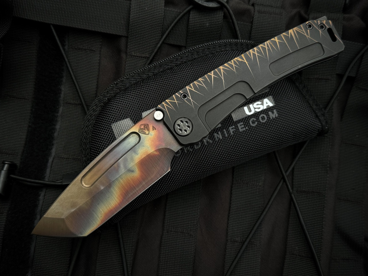 Medford Knives Marauder-H Black/Brushed Gold-Rose "Blades Of Grass" Titanium Body w/ DLC Pocket Clip and S45VN Vulcan Tanto Bla