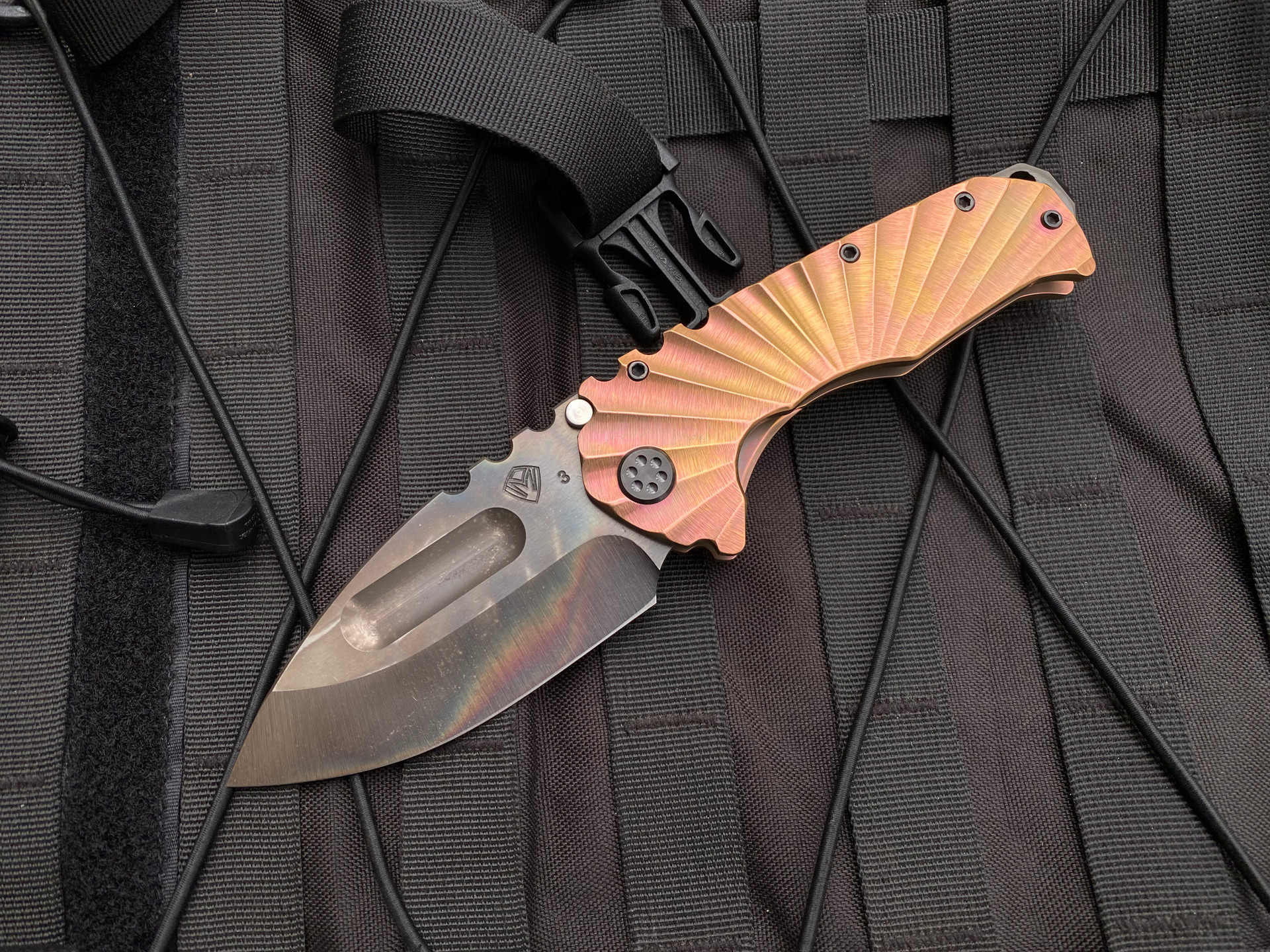 Medford Prae Ti Folder Rose "Rising Sun" Titanium Body w/ PVD Hardware, Rose Perimeter Clip, and Vulcan 3V Blade (3.75")