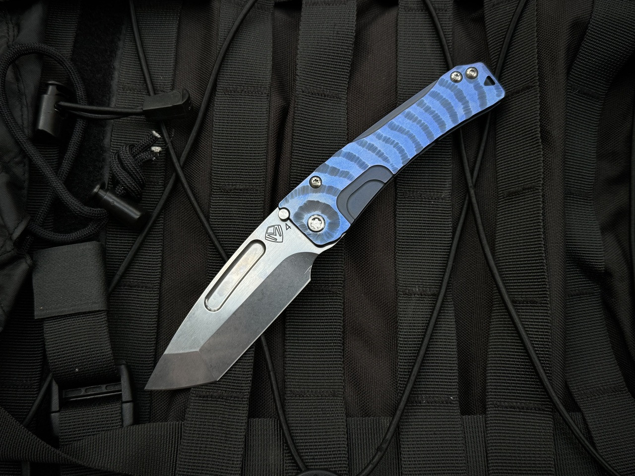 Medford Slim Midi Folder Beadblast/Brushed Blue "Tremors" Body w/ S45VN Tumbled Tanto Plain Edge Blade (3.25")