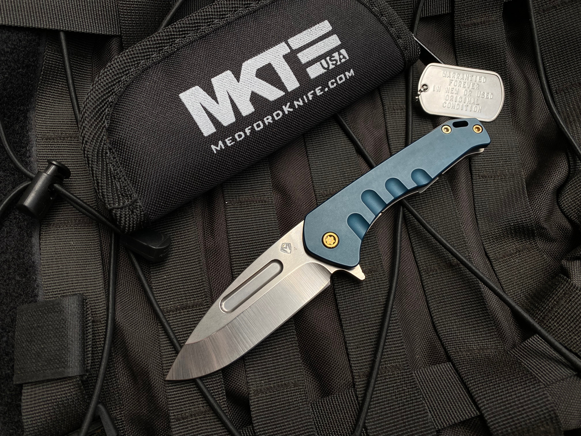 Medford Swift FL Flipper Blue/Tumbled Body w/ Bronzed Hardware and S45VN Tumbled Plain Edge Blade (3.375")