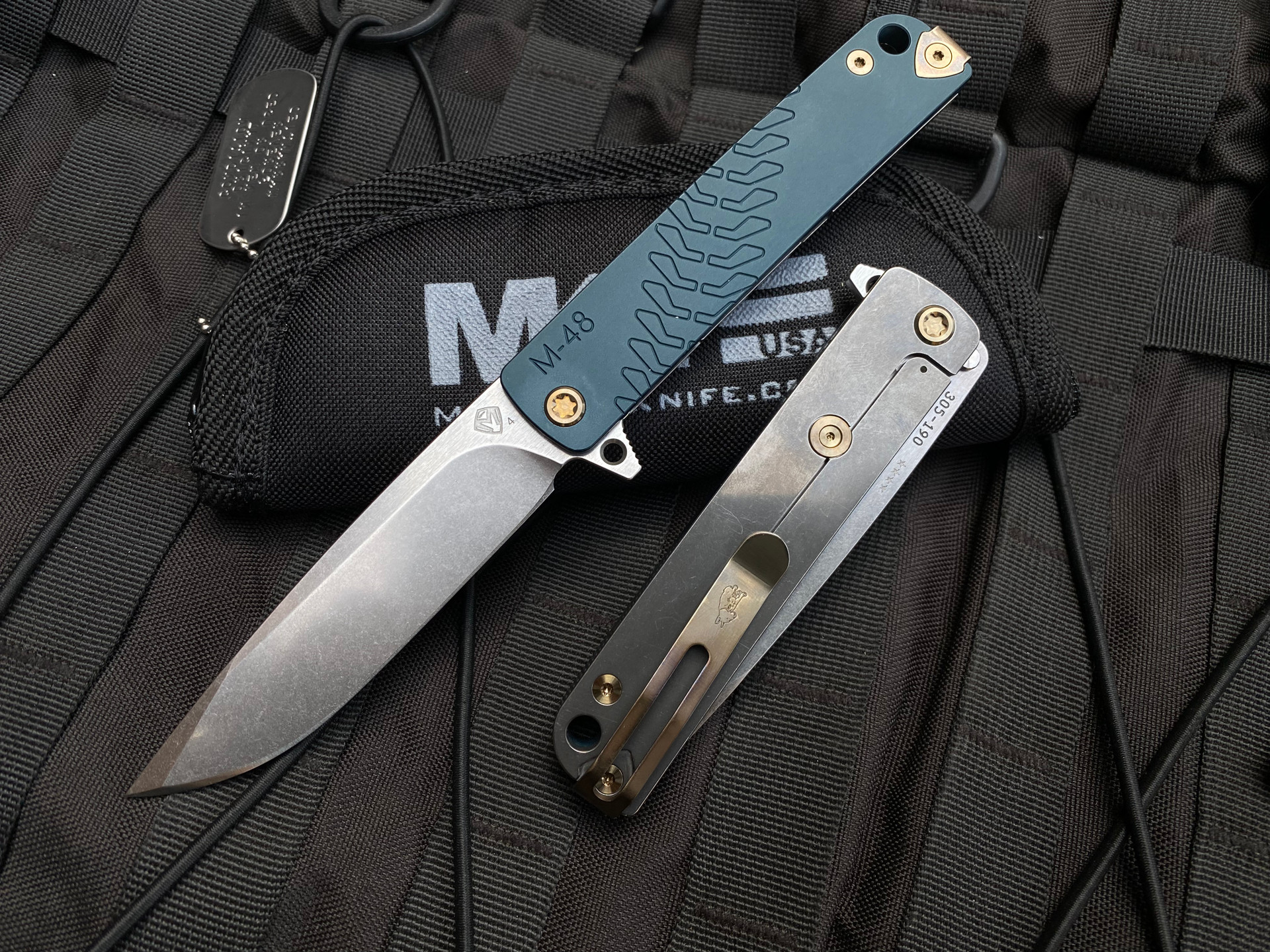 Medford M-48  Folder Blue Aluminum/Tumbled Ti Body and Bronzed Hardware/Clip w/ S45VN Tumbled Plain Edge Blade (3.9")