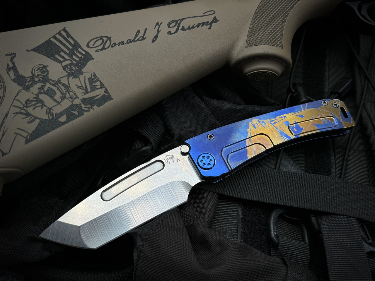 Medford Marauder-H Folder Tumbled Blue "Patriotic Themed" Titanium Body w/ S45VN Tumbled Tanto Blade (3.75")