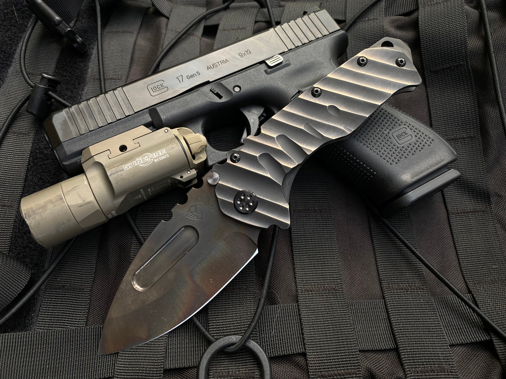 Medford Praetorian T Folder PVD/Brushed Brass "Warp Speed" Titanium Body w/ PVD Hardware, Brushed Brass Pocket Clip, and S45VN Vulcan Drop Point Plain Edge Blade (3.75")