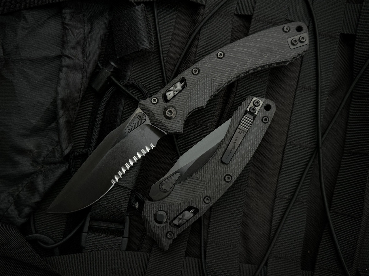 Microtech Amphibian S/E RAM-LOK Folder Fluted Carbon Fiber Body w/ DLC Partially Serrated Blade (4") 137RL-2DLCTFLCFS
