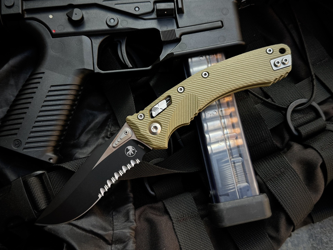 Microtech Amphibian S/E RAM-LOK Folder Fluted OD Green G10 Body w/ Black Partially Serrated Blade (3.9") 137RL-2FLGTOD