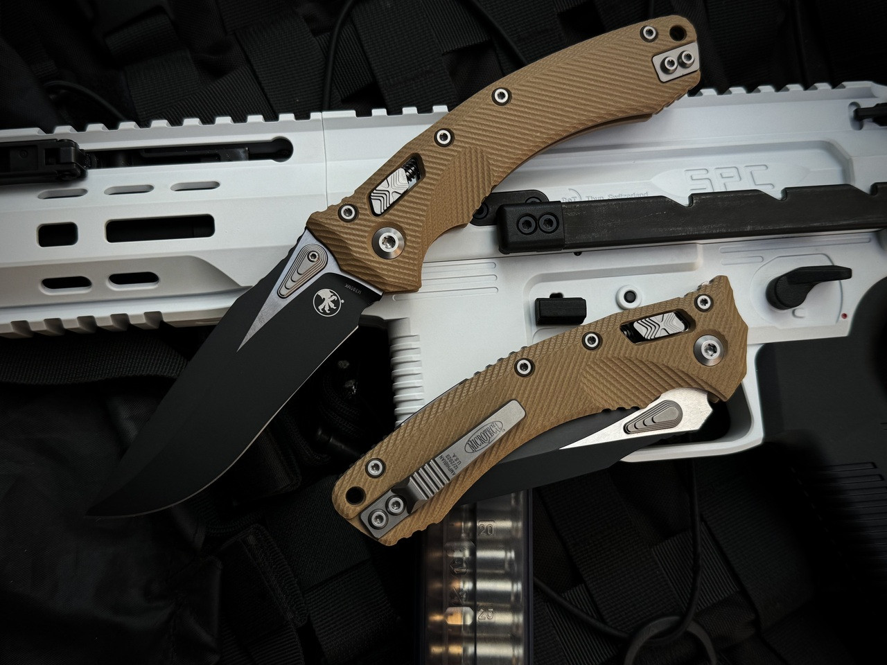 Microtech Amphibian S/E RAM-LOK Folder Fluted Tan G10 Body w/ Black Plain Edge Blade (3.9") 137RL-1FLGTTA