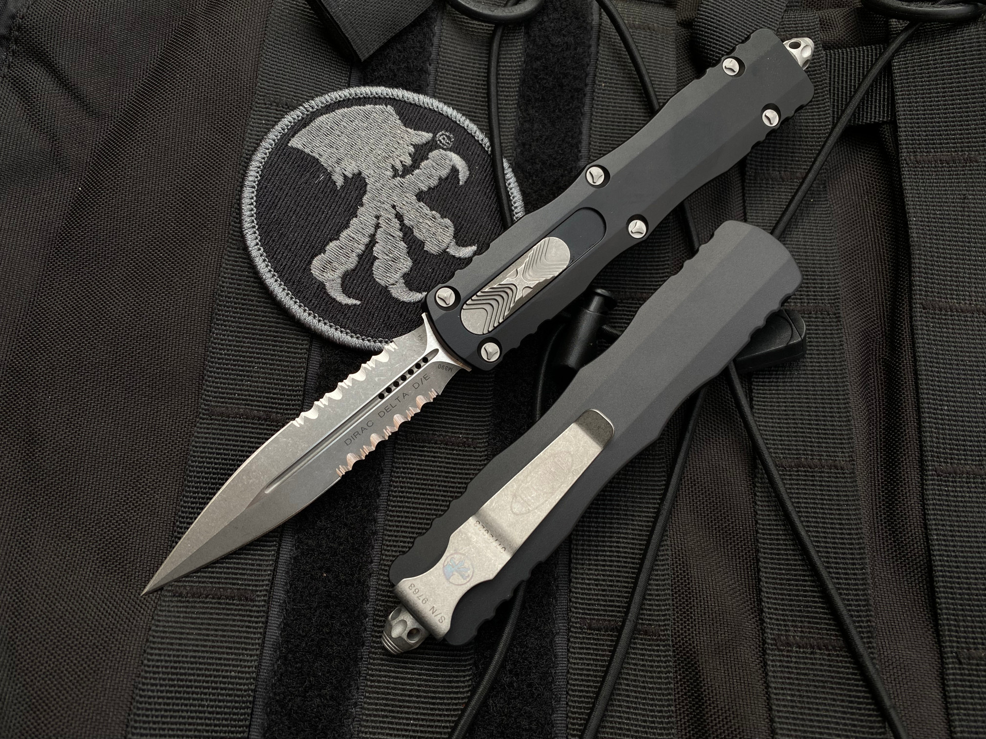 The Microtech Dirac Delta is the epitome of functionality with a dash of visual intrigue. The double-edge blade is not only designed for multipurpose use but also features partial serrations to aid in more specialized tasks. Its apocalyptic finish offers an eye-catching, distressed look, making it a perfect blend of form and function for your everyday carry.