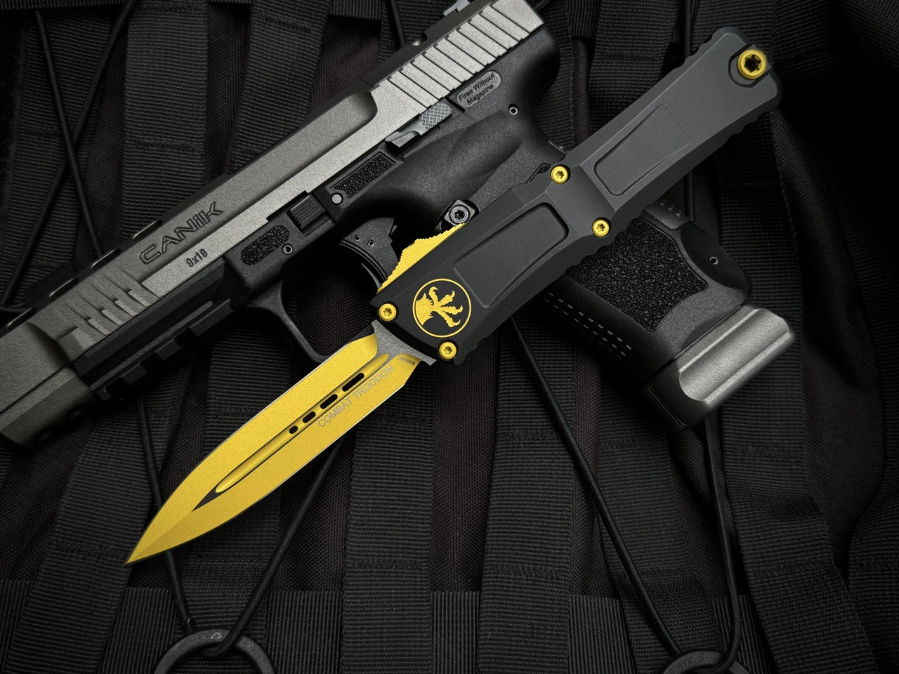 Microtech Gen III Combat Troodon D/E Black Aluminum Body w/ M390MK Yellow Plain Edge Blade/Hardware (3.8") 1142-1YWSK