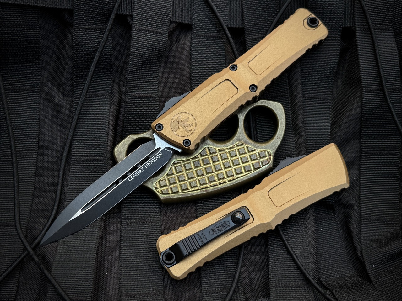 Microtech Gen III Combat Troodon D/E Tan Aluminum Body w/ M390MK Black Plain Edge Blade (3.8") 1142-1TA