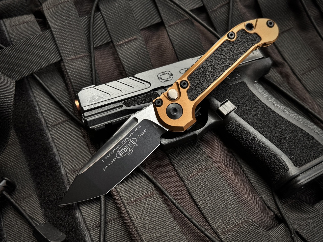 Microtech Gen III LUDT T/E Auto Folder Tan Aluminum Body w/ M390MK Black Plain Edge Blade (3.5") 1136-1TA