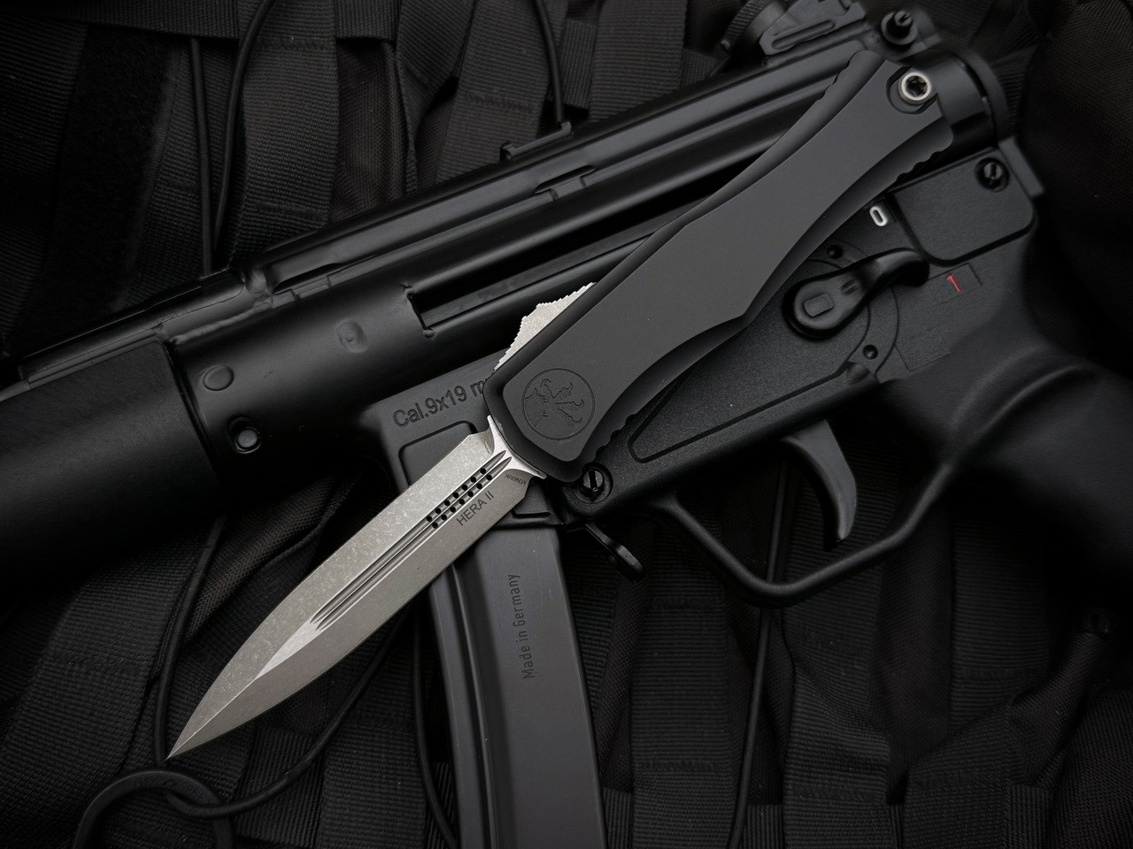 Microtech Hera II Black Aluminum Body w/ M390MK Apocalyptic Plain Edge Blade (4") 1702-10AP