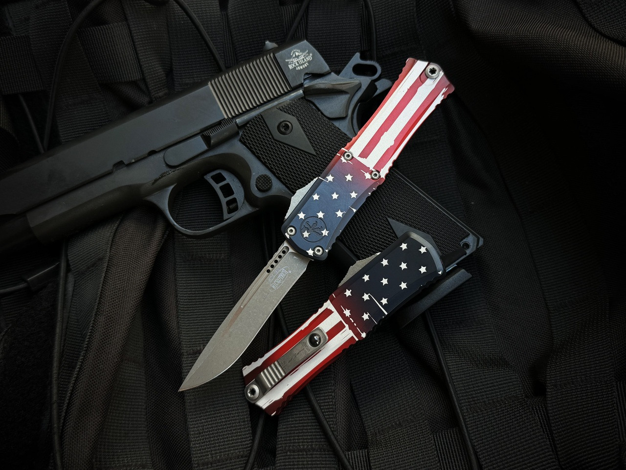 Microtech Hera II Mini Recurve USA Flag Aluminum Body w/ M390MK Apocalyptic Plain Edge Blade (2.875") 1705M-10FLAGS