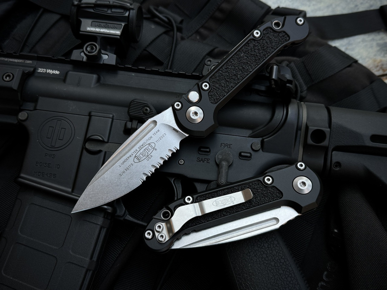 Microtech Gen III LUDT Auto Folder Black Aluminum Body w/ M390MK Stonewashed Partially Serrated Blade (3.5") 1135-11