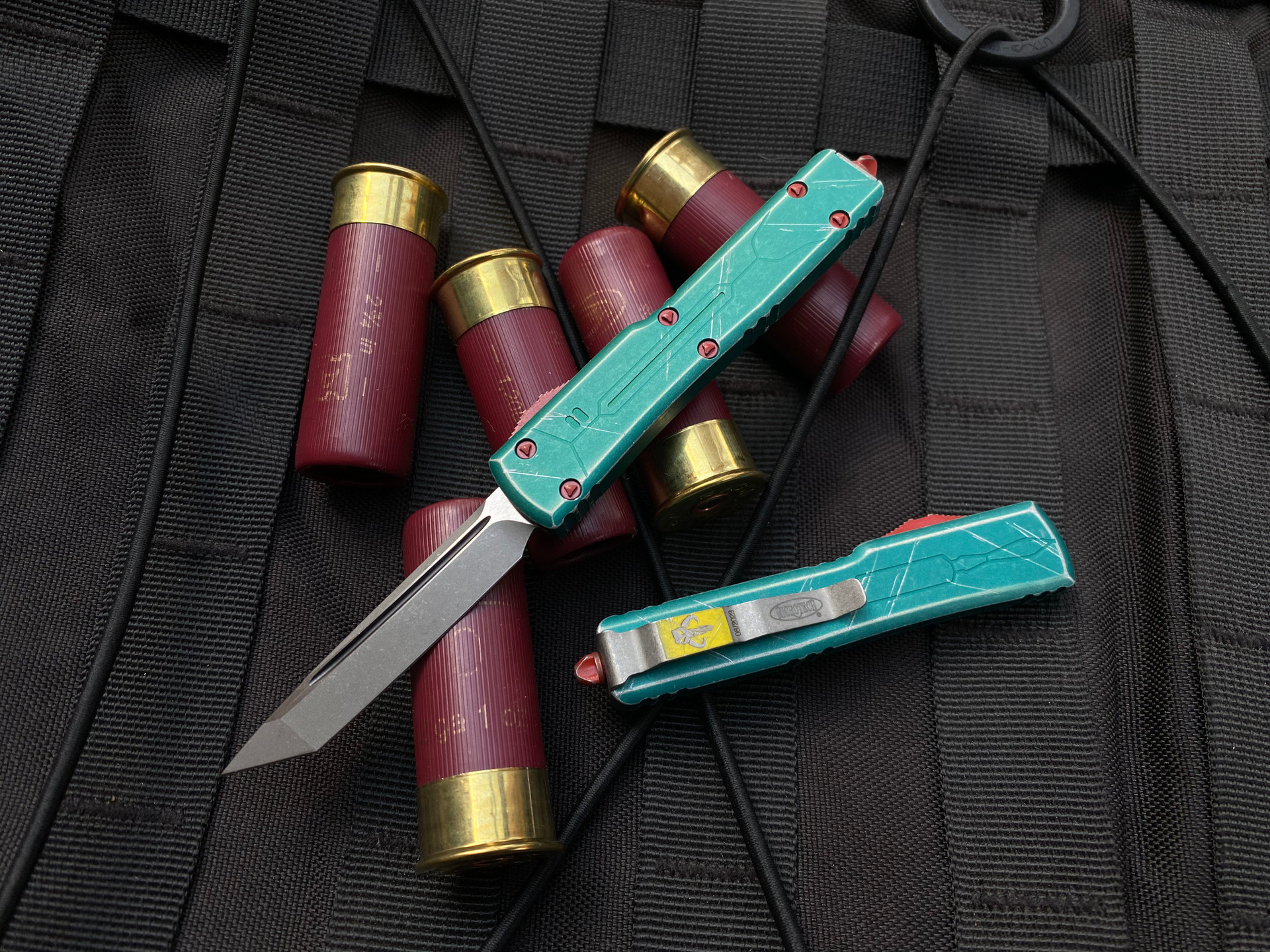 Microtech Knives UTX-70 T/E Bounty Hunter Pattern Aluminum Body w/ Apocalyptic Plain Edge Blade (2.42”) 149-10BH