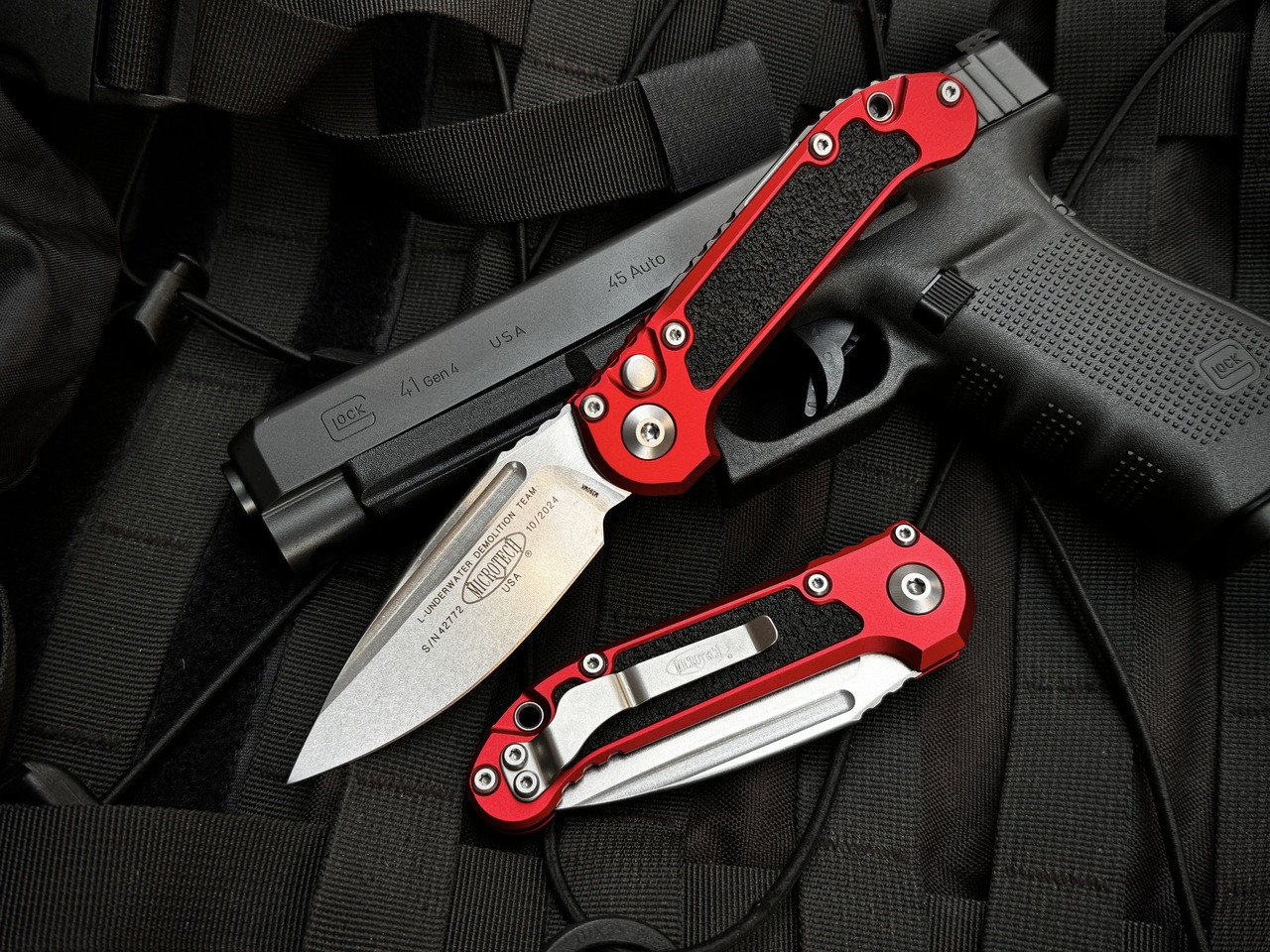 Microtech LUDT S/E Red Aluminum Body w/ M390MK Stonewashed Plain Edge Blade ( 3.5") 1135-10RD