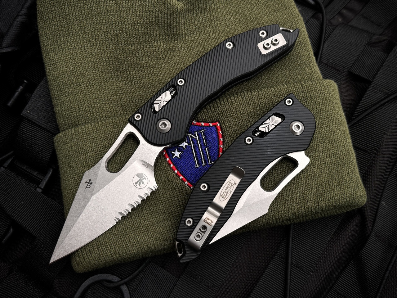 Microtech RAM-LOK Stitch Folder Fluted Black Aluminum Body w/ Stonewashed Partially Serrated Blade (3.75") 169RL-11FL