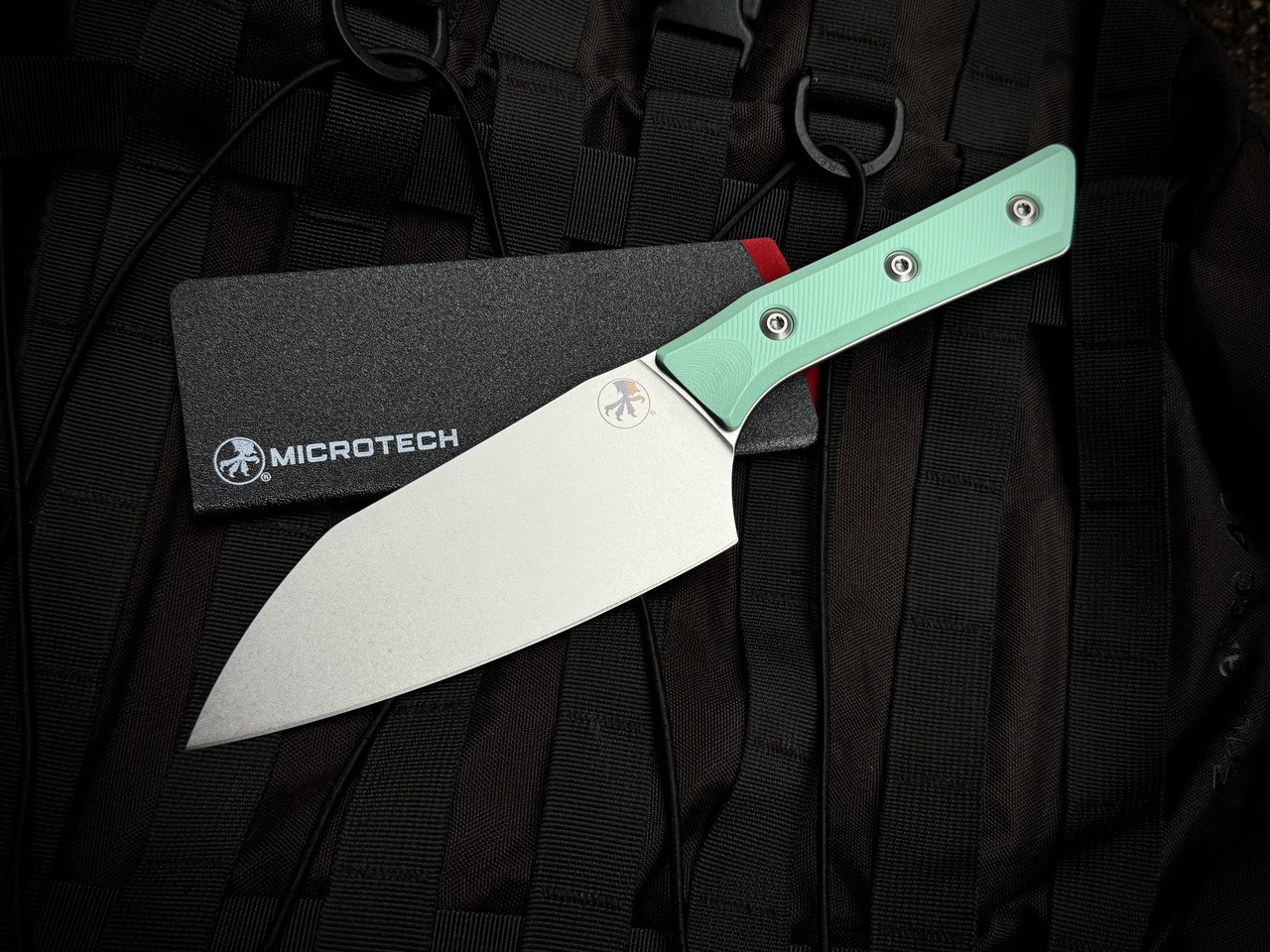 Microtech Santoku 6" Chef's Knife Caribbean Blue G10 Handle w/ M390MK Stonewashed Plain Edge Blade (6") 3200-10CA