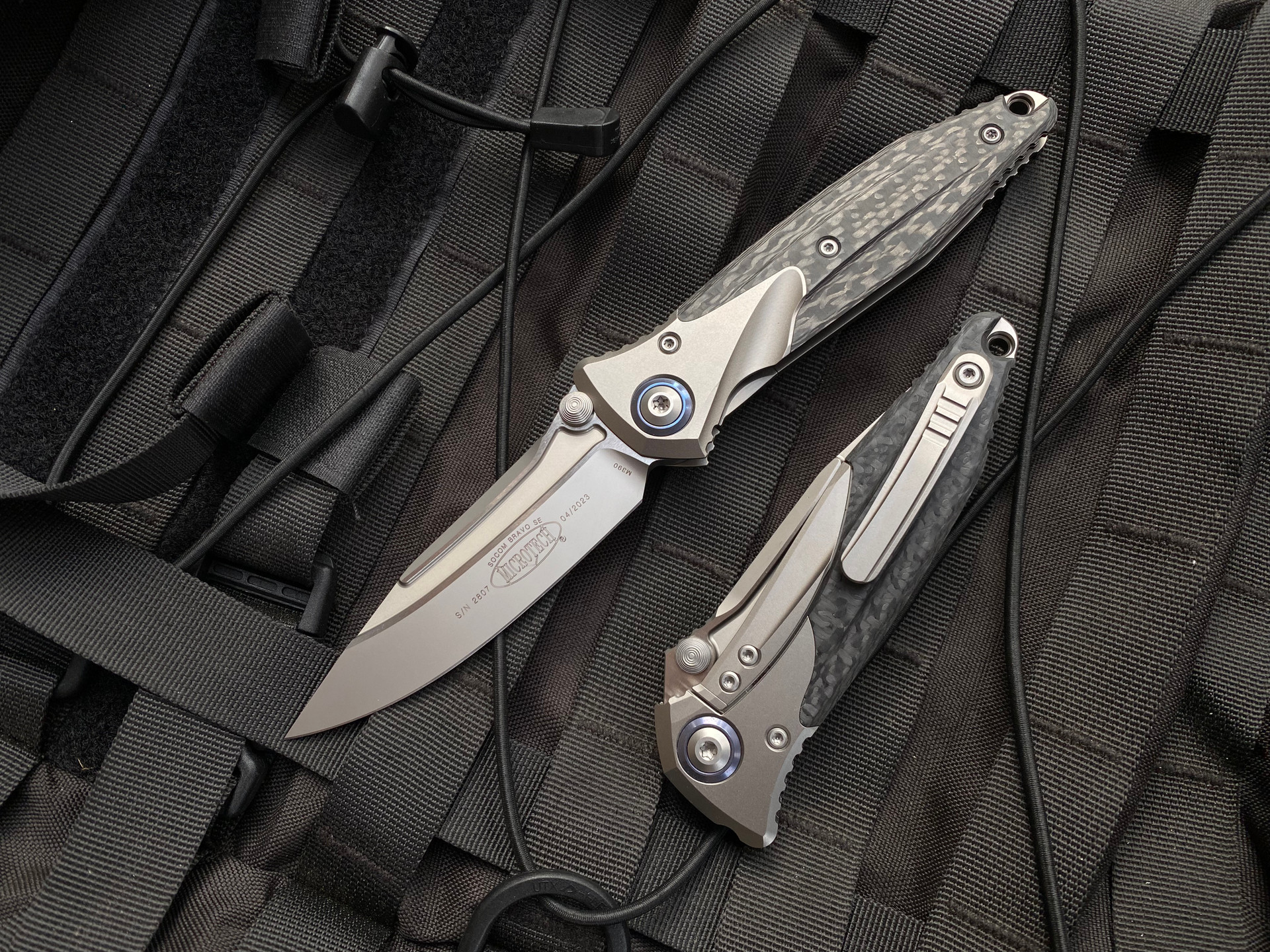 Microtech Socom Bravo S/E Folder Beadblast Titanium and Carbon Fiber Body w/ Beadblast Plain Edge Blade (4") 260-7CFTI