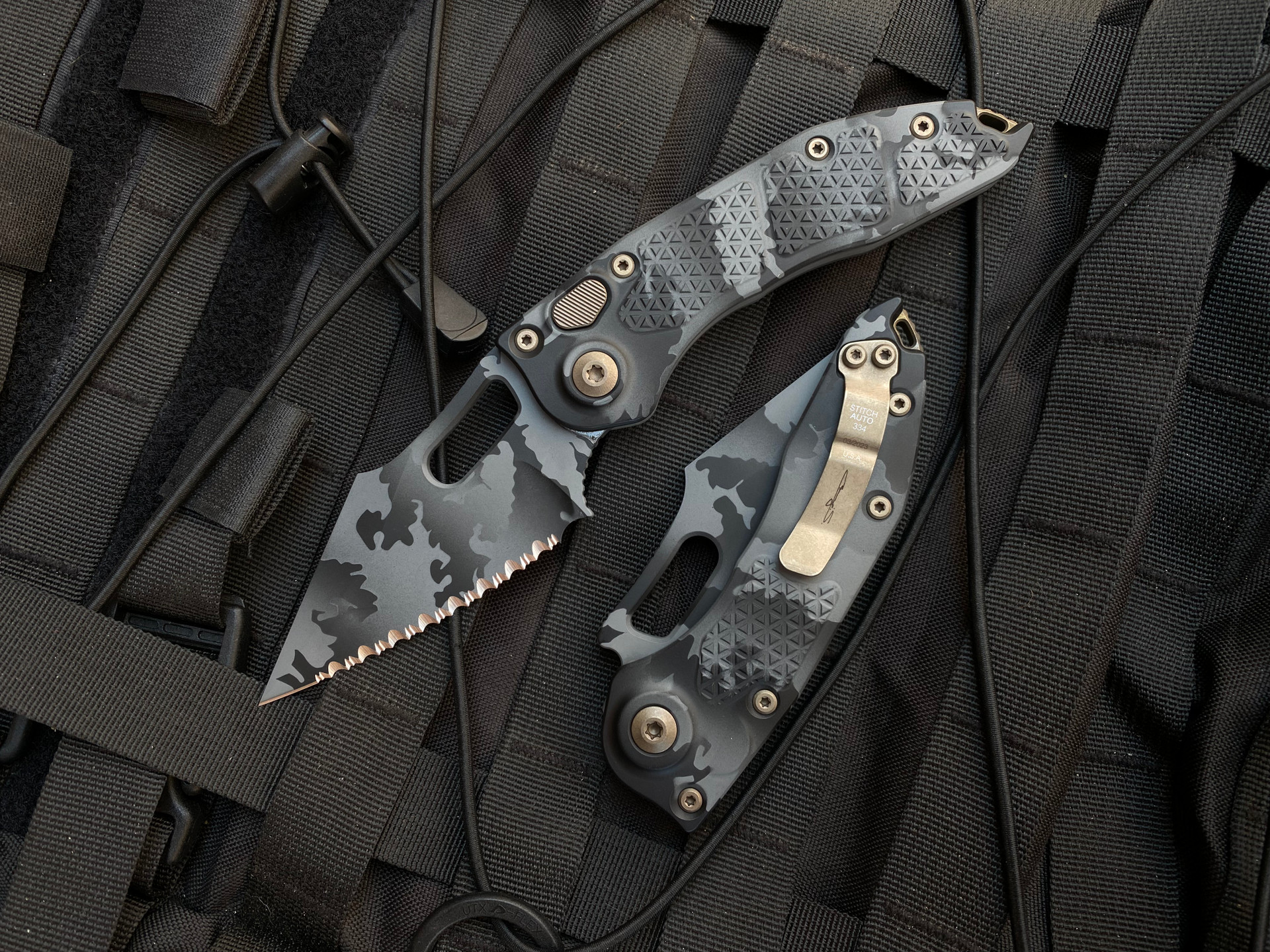 Microtech Stitch Urban Camo Full Serrated 169-3UCS
