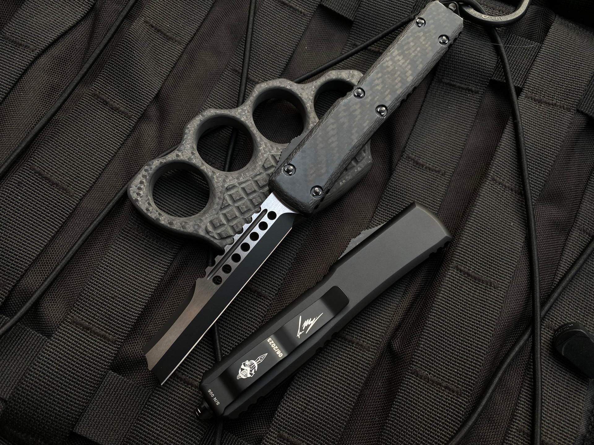 The Ultratech 119R-1CFS embodies a harmonious blend of style and practicality. The distinctive Hellhound Razor blade offers superior cutting performance, while the non-serrated design ensures precise, clean cuts. The dual-action OTF mechanism facilitates smooth operation, and the stylish carbon fiber top provides a comfortable grip. As always, Microtech guarantees top-tier quality by crafting the blade from the finest materials.