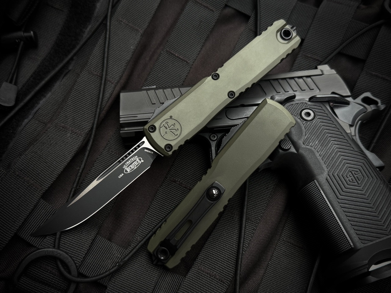 Microtech Ultratech S/E Gen III ZBP OD Green Aluminum Body w/ M390MK Black Plain Edge Blade (3.2") 1121-1OD